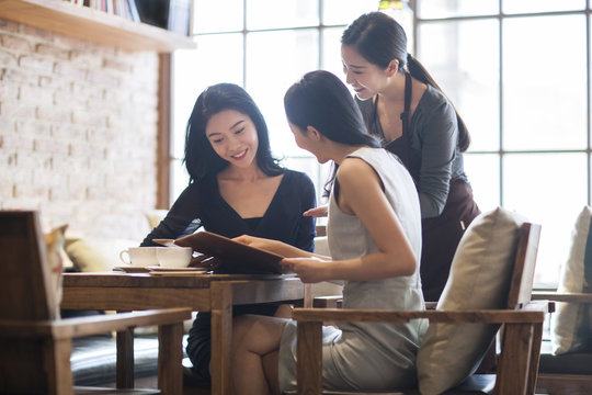 Best female friends drinking coffee in cafe_