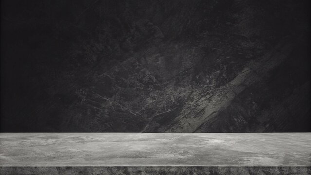 empty grey marble tabletop with dark black cement stone background for product displayed in rustic mood and tone. luxury background for product stand with empty copy space for party, promotion.