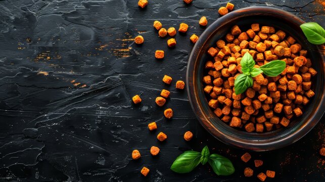 A bowl filled with nutritious dog food, perfect for your beloved canine s meal time enjoyment.