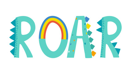 Vector lettering for the print. Lettering Roar in the style of dinosaurs, the roar of dinosaurs and beasts