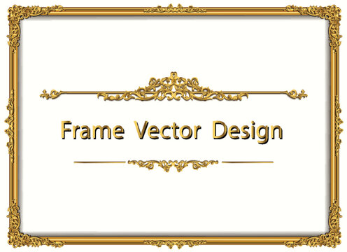 Gold frame with corner Thailand line floral for picture, Vector design frame border.