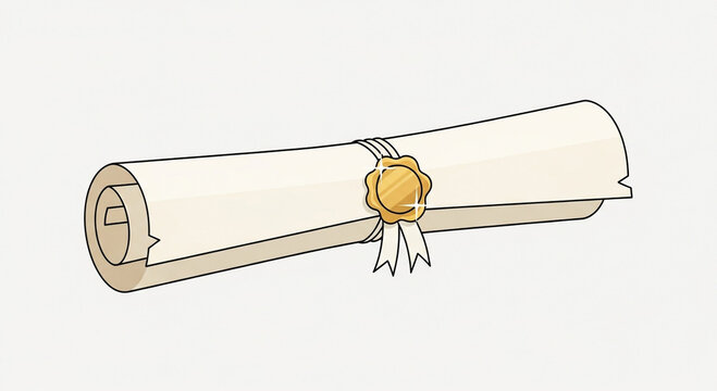 A Rolled Up Parchment Document Tied With A Golden Seal And Ribbon Illustrating A Certificate Of Achievement Or Historical Decree