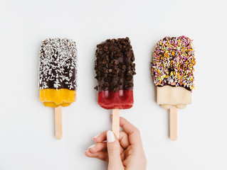 Assorted popsicles dipped in chocolate, coconut, sprinkles and chocolate chips