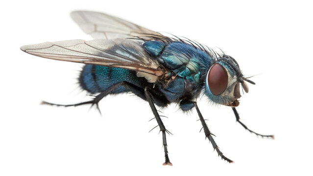 Blue fly insect isolated on transparent, side view