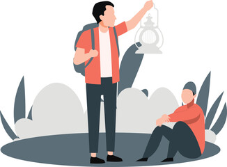 A boy directed his friend with lamps light.