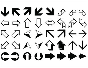 Bold arrow sign collection,  set of black arrows icons, isolated on white background - Vector