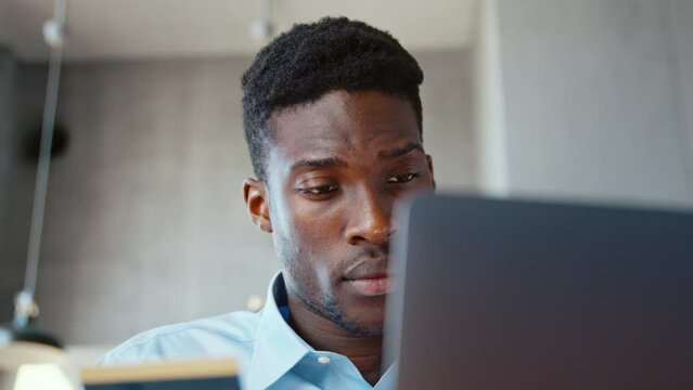 Young man using laptop enter credit card numbers