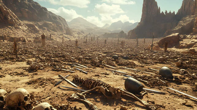 Bleak Desert Wasteland Littered with Mysterious Bone Piles