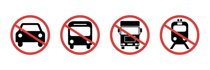 Set of vehicles entry icon, no cars parking, no trucks entry, no trainsentry, no bus parking sign, forbidden signs. red forbidden sign, No car parking, warning signs.