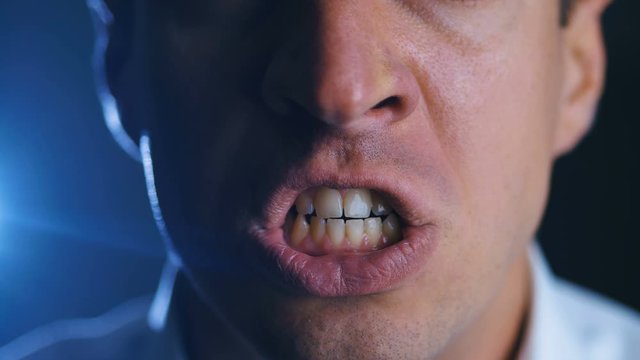 Closeup angry businessman screaming. Aggressive boss threatens violence. Stress at work.