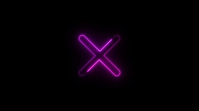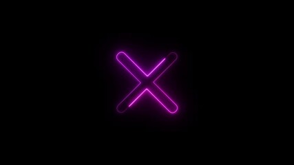 Neon glowing cross icon animated on black background. Neon cross icon on the black background. 4k