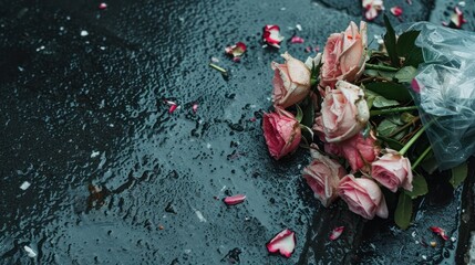 Discarded Roses Abandoned Bouquet on City Street - Urban Decay Photography