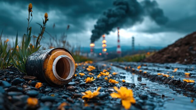 A bright and uplifting perspective of a landfill, showcasing the resilience of nature as vibrant flowers grow amidst discarded items