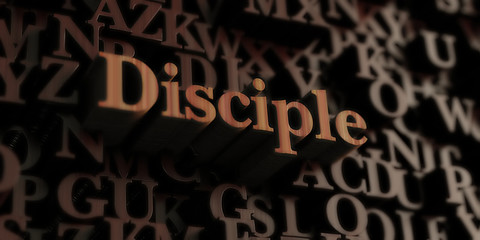 Disciple - Wooden 3D rendered letters/message.  Can be used for an online banner ad or a print postcard.