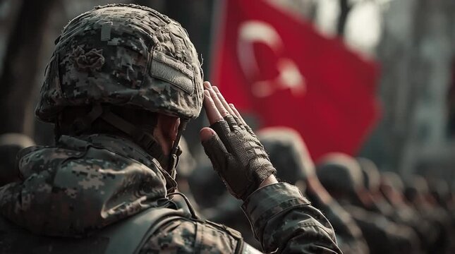 A disciplined military soldier in uniform, standing at attention in a formation with fellow soldiers, showcasing strength, unity, and dedication, symbolizing protection and service.