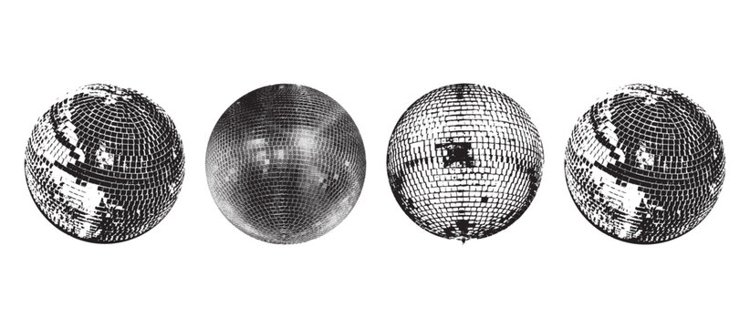dreamy aesthetic; romantic; black aesthetic; club; black and white; photography; disco balls; black and white retro; retro grain texture; many disco balls; fun; party; lots of disco balls