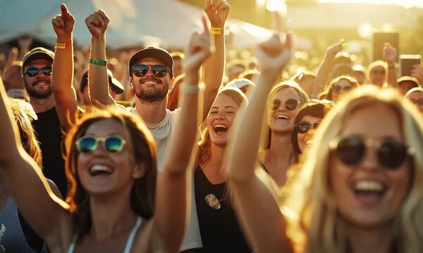 excited crowd with raised hands at concert isolated on a white - background - PNG. GENERATIVE AI