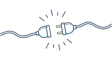 artoon illustration of Electric socket with a plug. Connection and disconnection concept. Concept of 404 error connection. Electric plug and outlet socket unplugged. Wire, cable of energy disconnect
