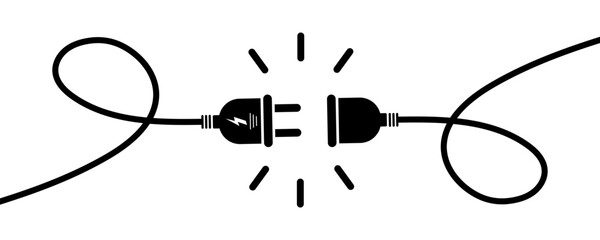 Electric cable vector icon. Connect or disconnect electric socket. Plug with voltage. Vector 10 Eps.