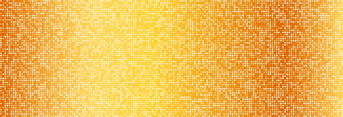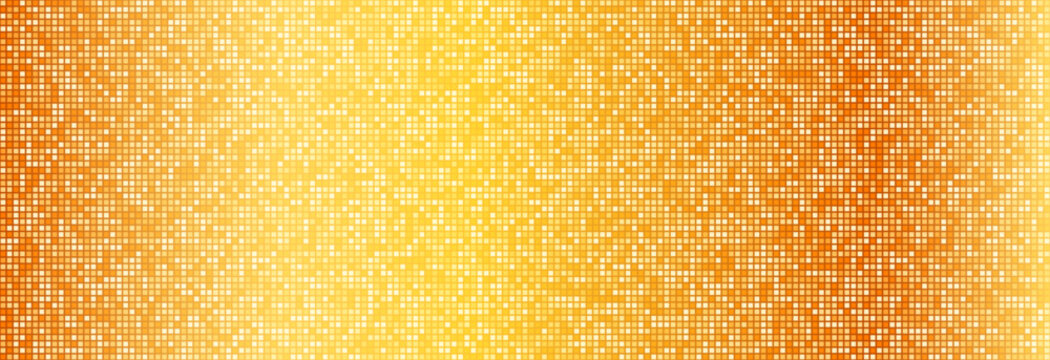 Gold disco party pattern. Yellow square sequin mosaic texture background. Abstract golden shining glitter halftone wallpaper. Pop up comic sparkling glitter backdrop. Retro vector design template