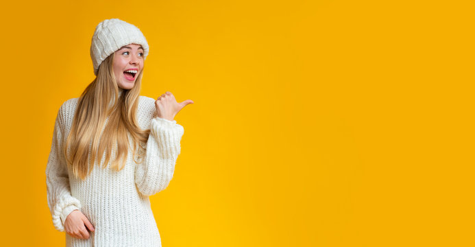 young boy in a yellow hoodie loudly announcing discounts and sales in a children's store through a megaphone