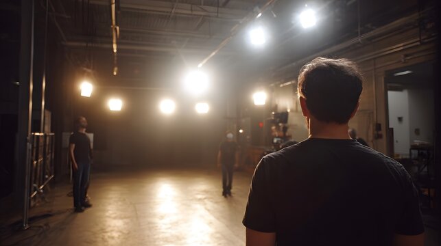 Professional photographer adjusting camera in studio setting