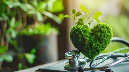 stethoscope with plant in heart shape, health care concept