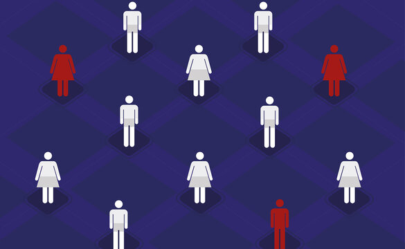 Social Distancing or Physical Distancing. People keeping distance for infection risk and disease prevention Of Corona Virus. Social Distancing Isometric Concept. Dark Blue Background