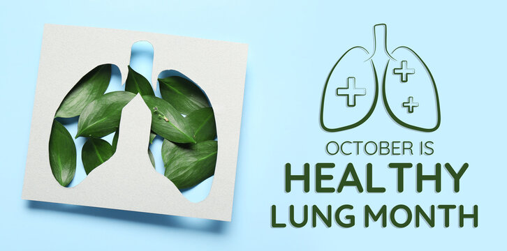 Paper cut out lungs and leaves on blue background