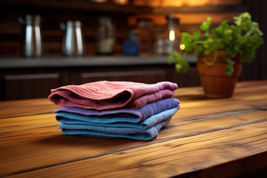 close-up of a dishcloth on a wooden countertop