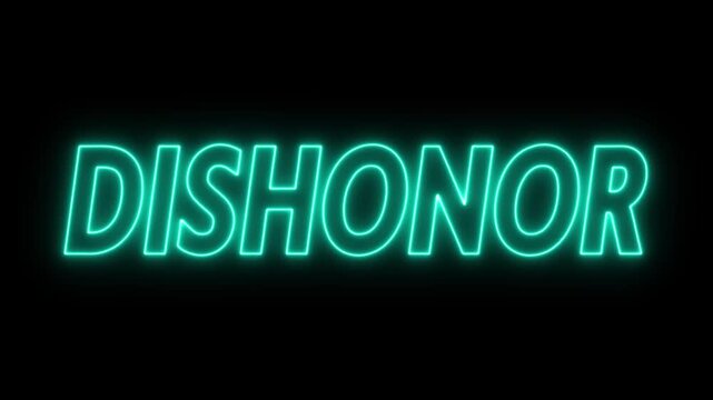Animated glowing flickering neon inscription dishonor. neon dishonor text animation