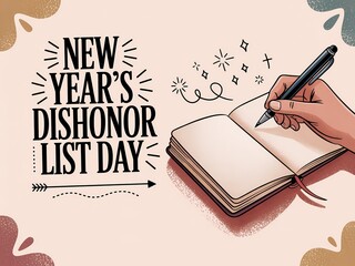 Hand writing new year s dishonor list day on a notebook with a pen celebrating unconventional resolutions