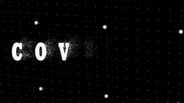 An animation of covid-19 text disintegration effects with black and white revolving grid background.