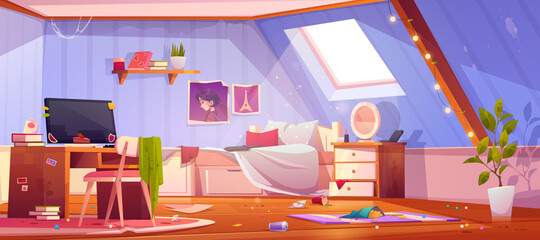Dirty room. Disorder in the interior. Flat style vector illustration.