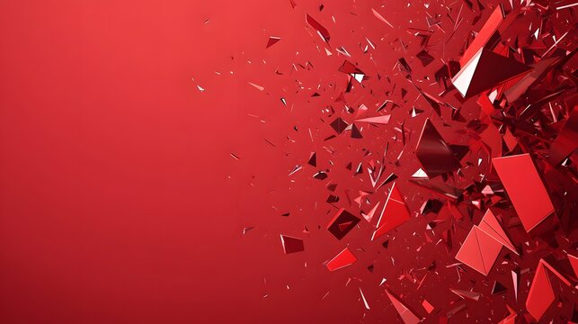 Shattered pieces of red glass floating on a red backdrop