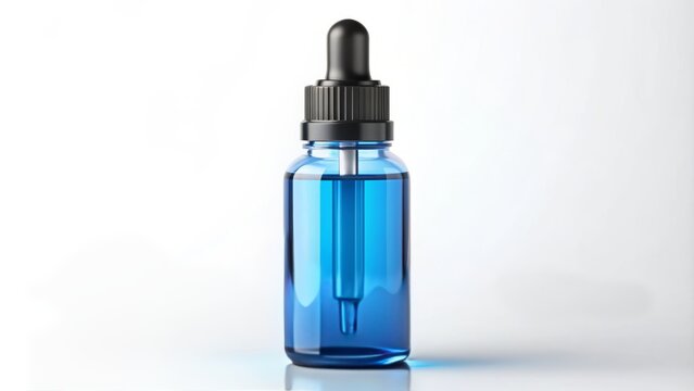 a close up of transparent plastic bottle with unprinted blank white label  isolated on the right  of blue  background