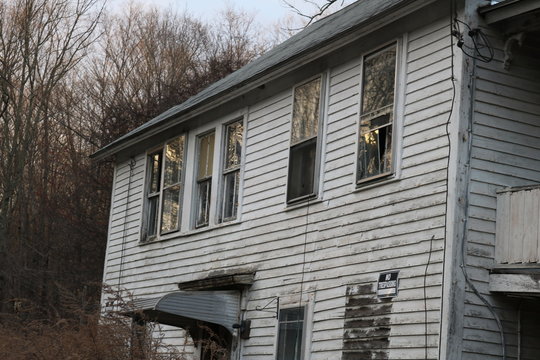 Old abandoned wooden weathered abandoned New England farmhouse