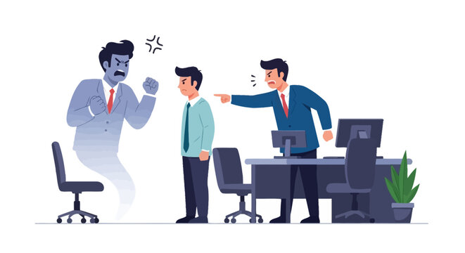 Angry Boss Scolds Employee Ghostly Figure Watching
