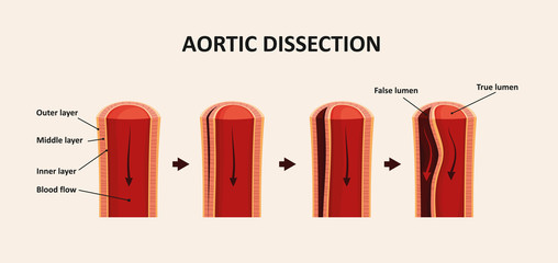 Comparison illustration of normal aorta and aortic dissection