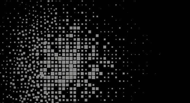 Abstract geometric pattern of dissolving squares on black background