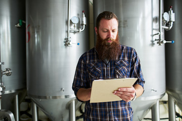Copper large distillation tanks used to produce beer or other alcohol at the plant close up with space for text or inscriptions