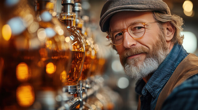 A master distiller inspecting the quality of the spirit with meticulous attention to detail.
