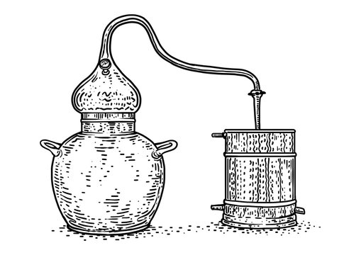 Alcohol distiller illustration, drawing, engraving, ink, line art, vector
