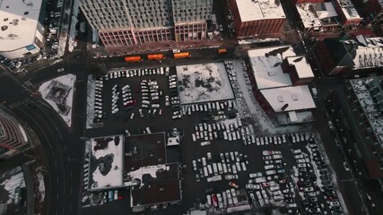 Aerial of traffic congestion near downtown Toronto at night. DOLLY LEFT