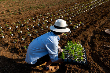 A drone flying over tomato fields, distributing fertilizer and showcasing the innovations of precision farming