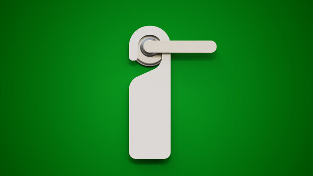 Blank paper or plastic empty label for hotel doorknob room, dont disturb signs, messages on entrance knob on a green background. Door hanger and handle mock up.