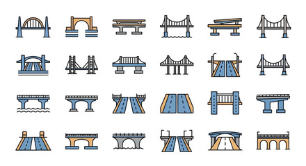 Collection of various bridge illustrations, showcasing diverse architectural designs and structures.