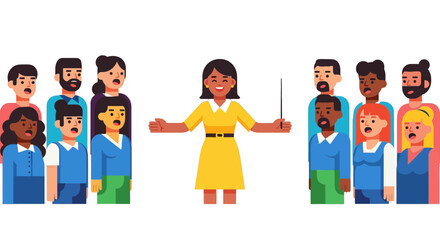 Harmonic Harmony: A diverse choir of singers, guided by their conductor, united in perfect pitch and rhythm, creating a beautiful musical performance.