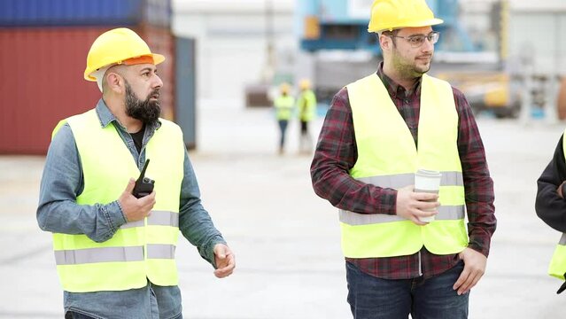 Industrial engineers working in logistic terminal of container cargo