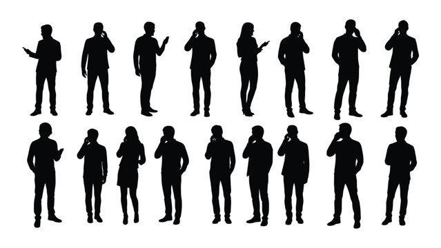 Silhouettes of diverse people illustrating various daily interactions and movements in a crowd